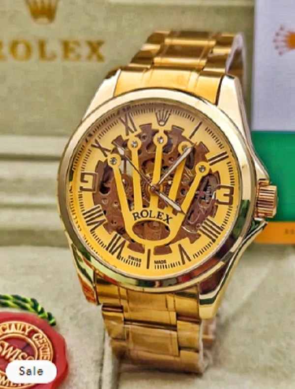 Analog Golden Rolex Skeleton Watch Automatic